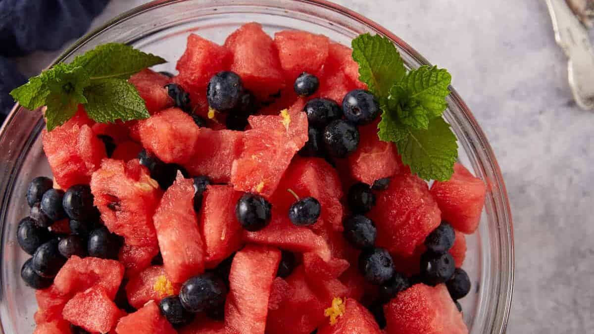 Minty Watermelon and Blueberry Fruit Salad