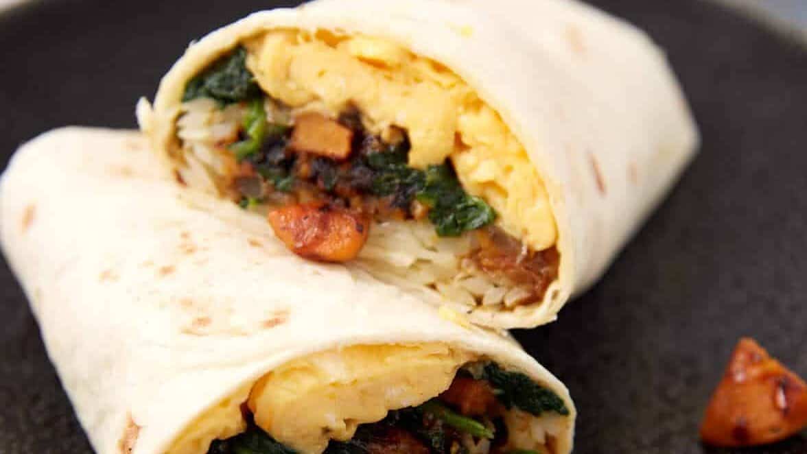 Breakfast burritos are hearty and customizable with eggs, sausage, potatoes, and cheese—all wrapped in a tortilla for an easy, on-the-go meal.