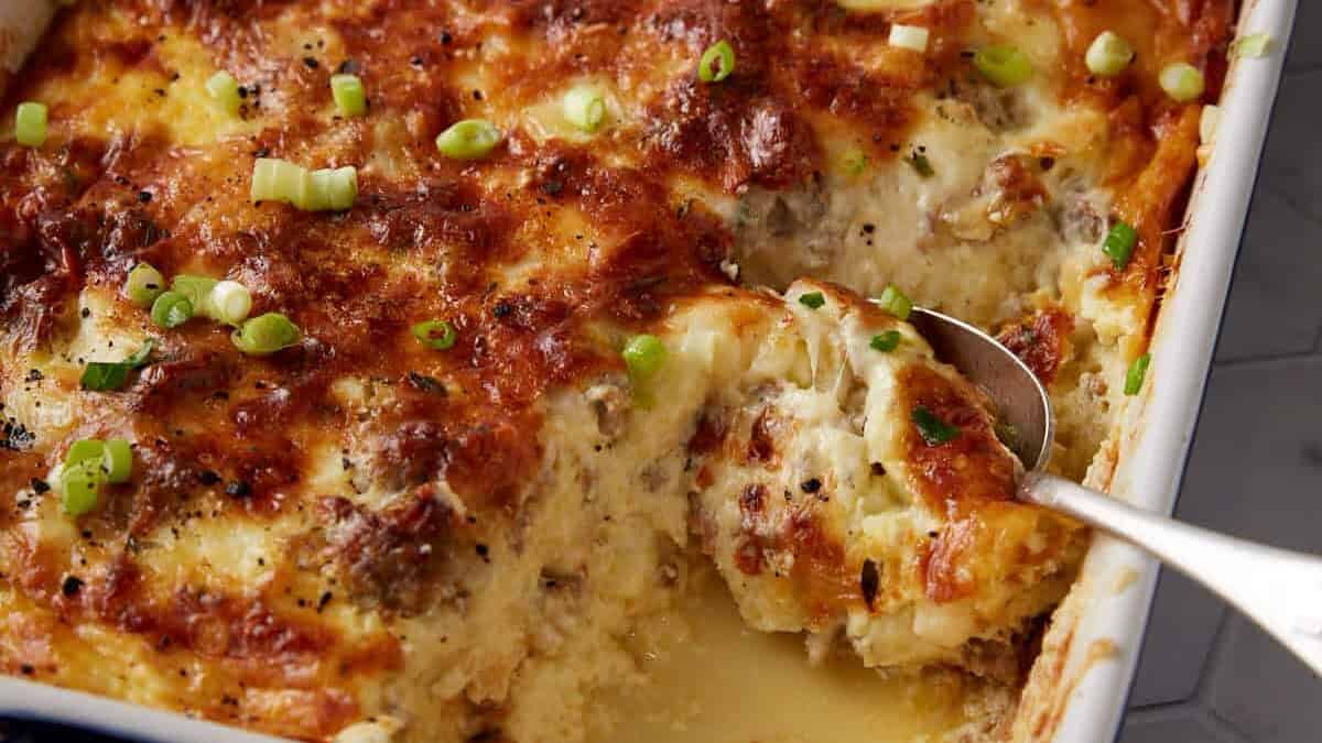 This hearty casserole layers biscuits, sausage, eggs, and creamy gravy for a make-ahead breakfast that satisfies a crowd.