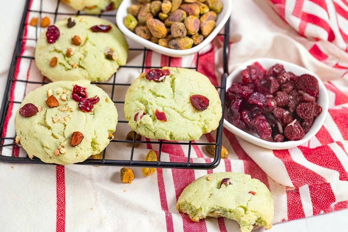 These pistachio cookies are soft, chewy, and packed with nutty flavor and tart cranberry bites. Easy to make and perfect for gifting or gatherings. A colorful twist on classic cookies.