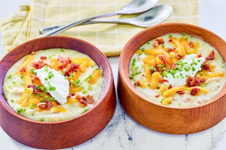 Creamy, rich, and full of bacon and tender potatoes, this copycat Panera soup is a cozy comfort dish that’s easy to whip up.