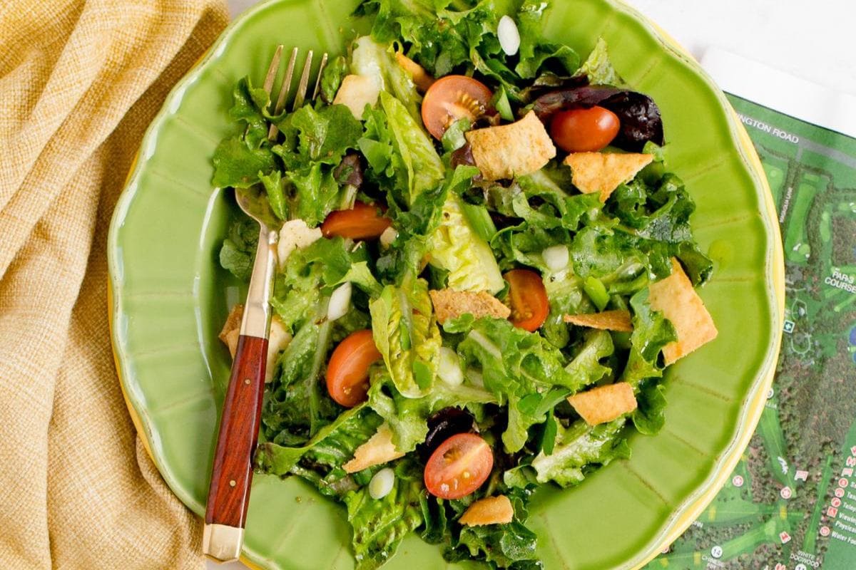 Inspired by the iconic restaurant in Augusta, this Green Jacket Salad features crisp greens, crunchy pita chips, and a tangy homemade dressing. A refreshing and nostalgic favorite.