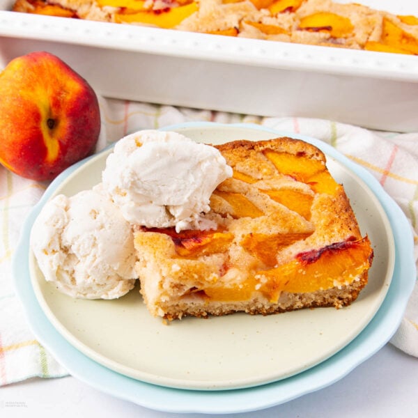 - Stirring the peaches into the batter: Resist the urge! The magic happens when the batter rises up around the fruit as it bakes.