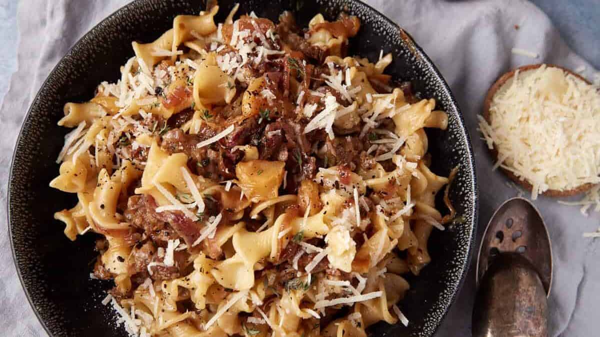 Get the Recipe: One-Pot Sausage Apple Pasta with Onions