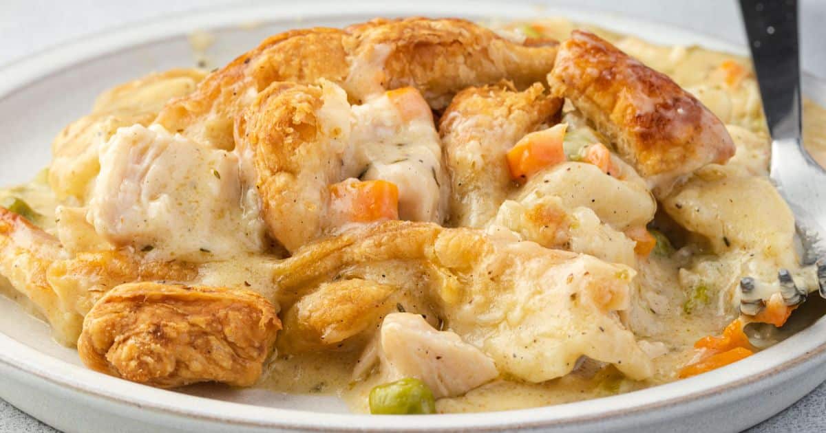 Creamy Slow Cooker Chicken Pot Pie Soup captures all the flavor of classic pot pie in a comforting bowl. Tender chicken and vegetables simmer in a creamy broth. Fluffy biscuits on top add a familiar finishing touch. Creamy Slow Cooker Chicken Pot Pie Soup is perfect for chilly nights.